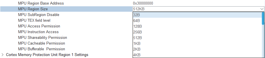 First, you need to ensure the correct buffer size. It must be a power of two (starting at 32 bytes) and aligned to its size. From STM32CubeMX MPU screenshot, you can see an example of proper sizes.